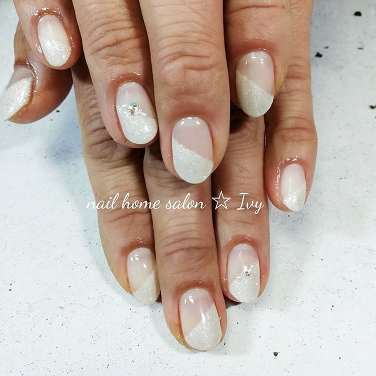 ハンド 変形フレンチ ホワイト ジェルネイル お客様 Ivy Kankoのネイルデザイン No ネイルブック